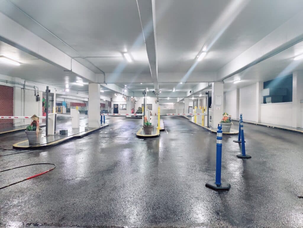 Of course regular power washing is just one of the many thing that we do to make sure that Harbor Park Garage will make a great impression. The parking is staffed 24-7 so while you are sleeping our parking associate are busy cleaning.  And durring the day we are clean the key areas of the garage hourly.  That way we make sure that the parking garage is sparkling when you arrive.