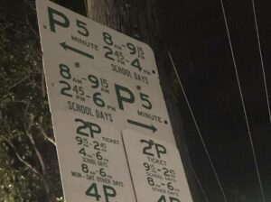 • Solution: If you find a space on the street before metering hours, you will have to run back to your car and feed the meter at 9 am. Don’t be late or chances are you will have an expensive ticket waiting for you.  If you park after metered hours be sure to read all the signs carefully.  Never every spot on the street is the same and the language on the signs can be confusing.