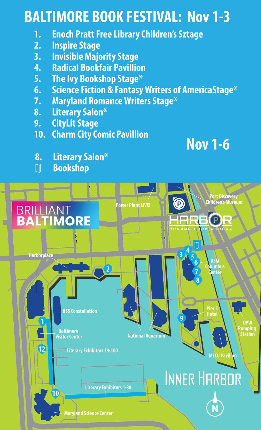 Everyone, gather round! Our team has done it once again this year! Here are this years maps to both events by your Harbor Park Garage team! So bookmark this page, or download these maps we are always going to hook you up not just with parking but with maps as well. Check out our Brilliant Baltimore x Light City x Baltimore Book Festival guide in having the best time enjoying these festival mashups!