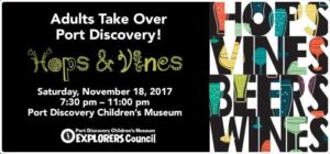 Join Port Discovery for the 5th Annual Hops & Vines Fundraiser, where you’ll take part in fun activities, demonstrations, make Shrinky Dinks, and explore three floors of interactive exhibits that bring out your inner child.