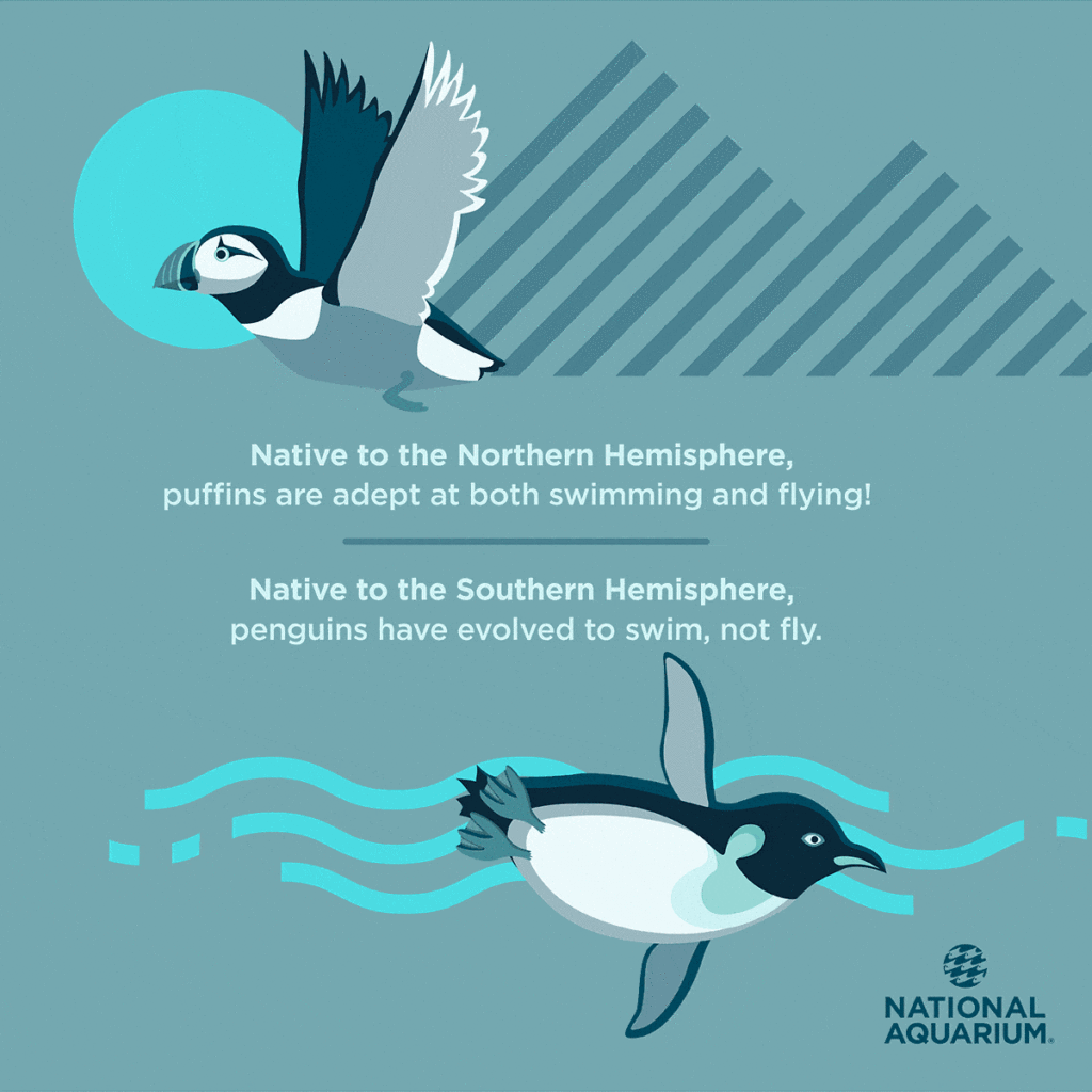 The mix-up is understandable—both puffins and penguins are black-and-white sea birds, have an upright posture and are good swimmers. They both have names that start with “p” and end with “n.” But, the similarities between them pretty much end there.